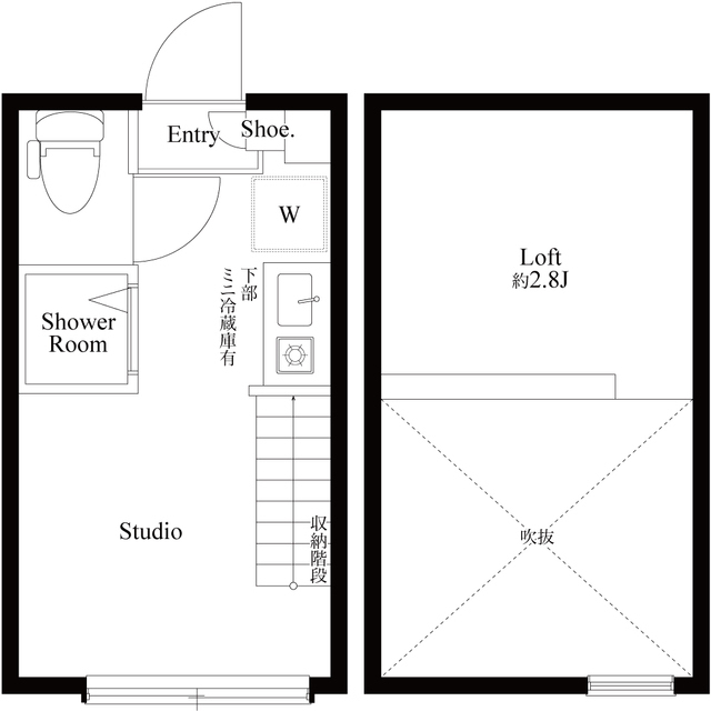 • 間取り: 1R+ロフト